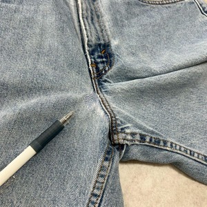 ●ブランド リーバイス ●年代 99年 ●サイズ W31 実寸 ウエスト 39cm ワタリ幅 33cm 裾幅 28cm 股上 30cm 股下 26cm 総丈 52cm ●カラー ●素材 コットン ●状態 古着の為多少の使用感、汚れダメージのある箇所がございます。 ※基本的に目立つ汚れや破れ等がある場合は写真に載せておりますが見落としなどにより細かなキズや汚れがある場合がございます。