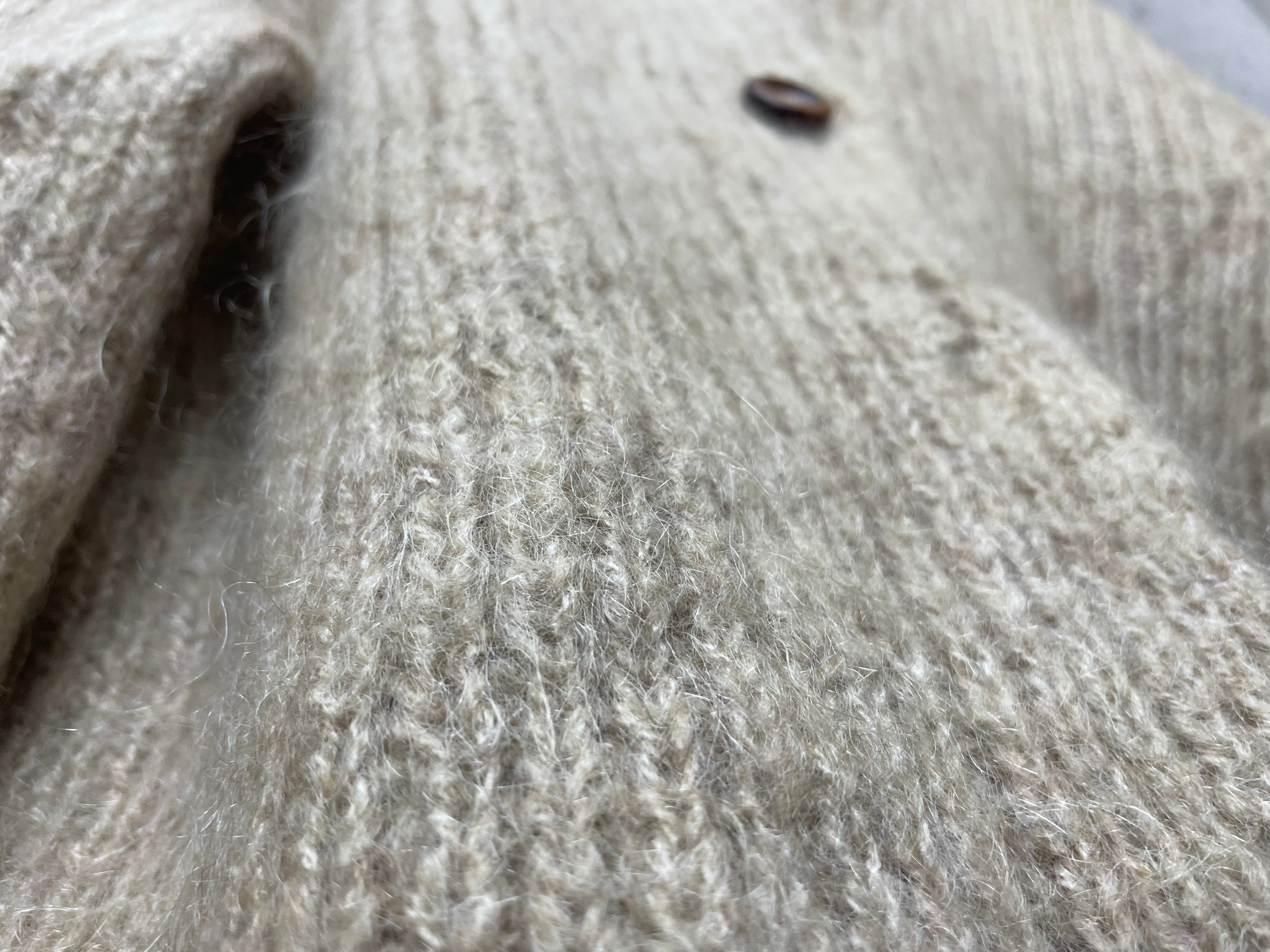 ●ブランド タグ無し ●年代 ●サイズ表記 着丈 72 cm 身幅 54 cm 袖丈 60 cm ●カラー ベージュ 生成り ●素材 ●状態 全体的に多少の使用感有り。 フロントのボタンが3箇所欠損しております。