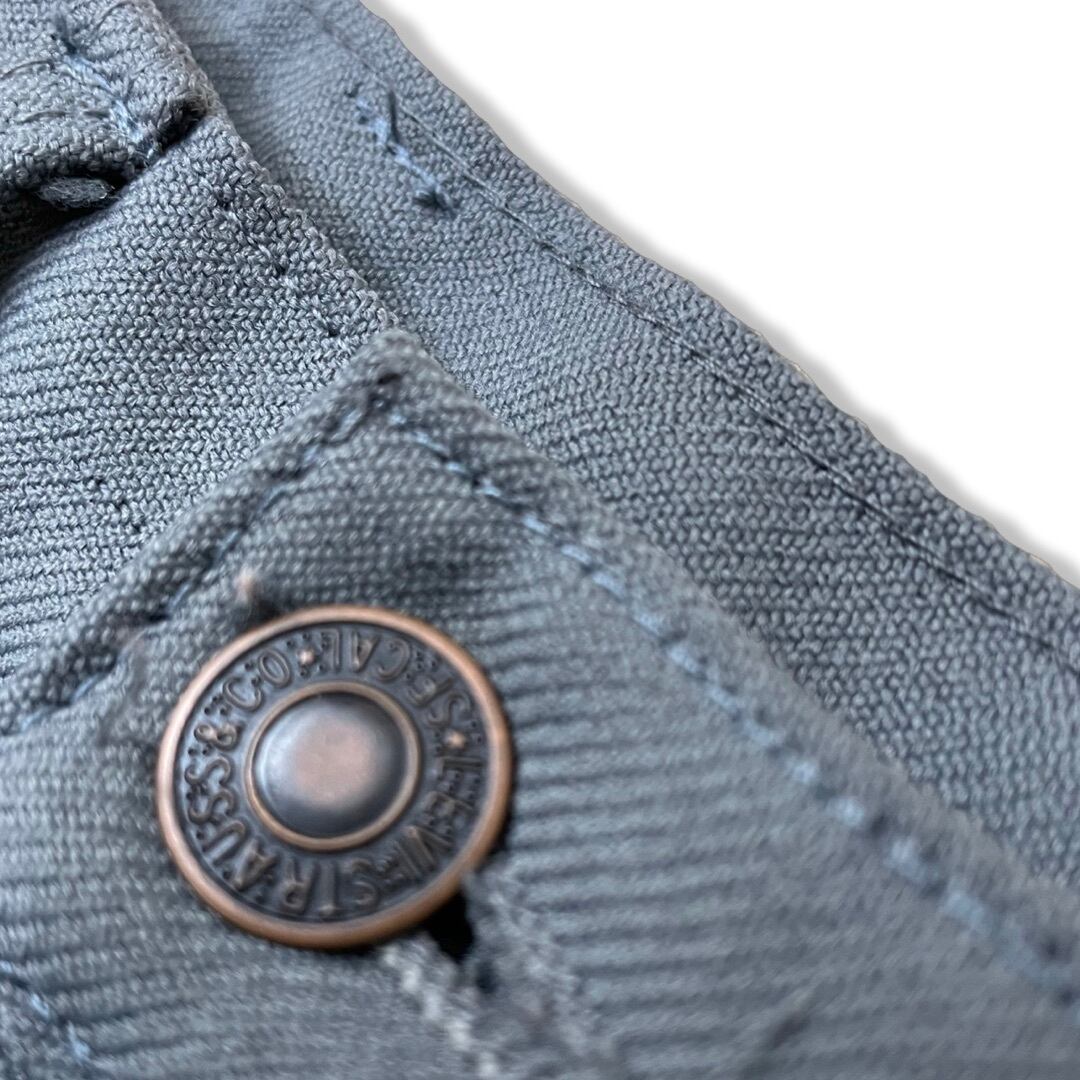 ●ブランド LEVI’S ●サイズ表記 W34×L30 ウエスト 38 渡り幅24 裾幅19 着丈104 股下72 ●カラー グレー ●素材 polyester100% ●状態 前身頃、後身頃にスレ、汚れが見受けられます。