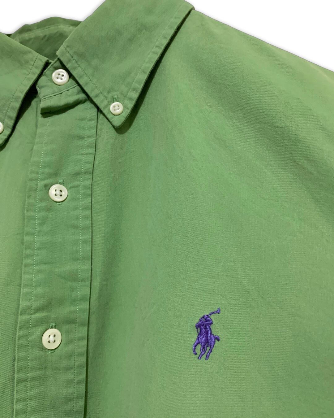 ●ブランド POLO Raluph Lauren ●サイズ表記ーXLー 着丈 75cm 身幅 68cm 袖丈 65cm ●カラー 緑 グリーン ●素材 ●状態 古着の為多少の使用感はございますが目立つ汚れやダメージはございません。