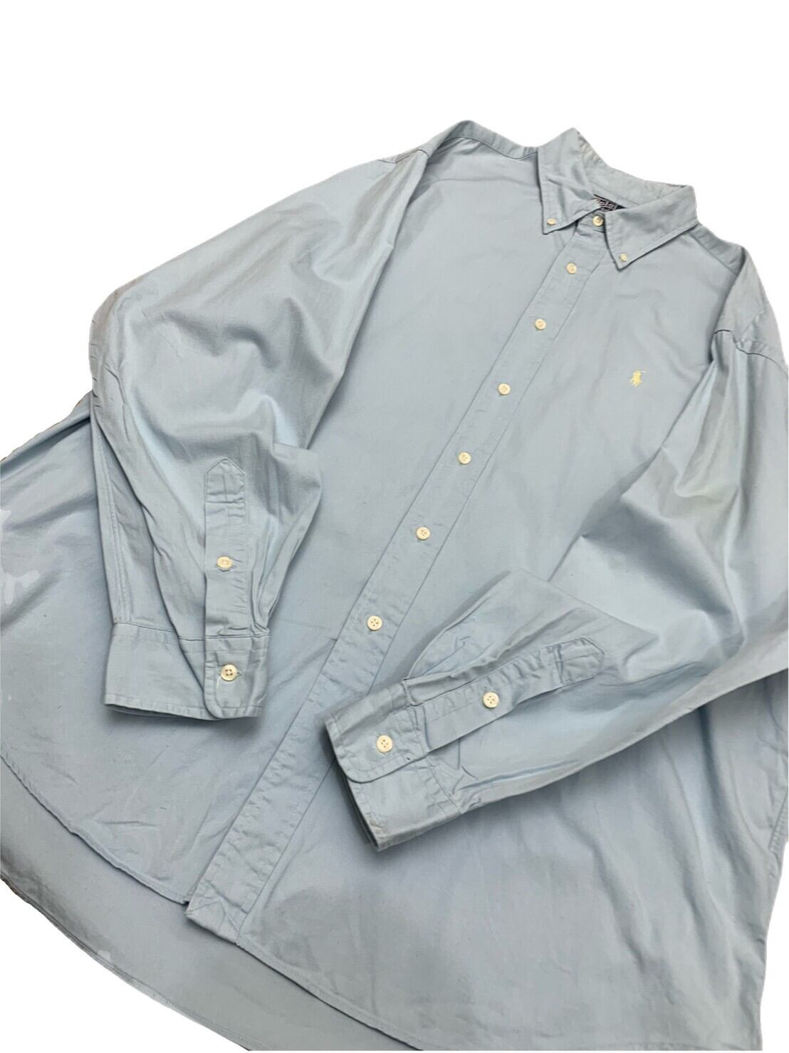 ●ブランド POLO Raluph Lauren ●サイズ表記ーXLー 着丈 80cm 身幅 71cm 袖丈 63cm ●カラー 水色 ライトブルー ●素材 ●状態 多少の使用感はございますが目立つ汚れ等はございません。