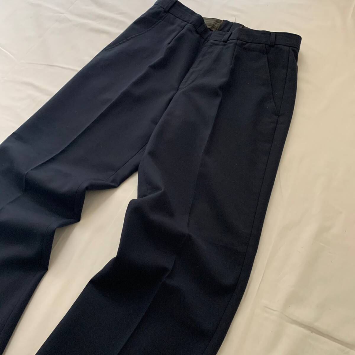 ●国 ドイツ軍 ●サイズ表記 ウエスト 42センチ 渡り幅 25センチ 裾幅 23センチ 着丈 106センチ 股下 79センチ ●カラー ネイビー ●素材 ●状態 古着の為多少の使用感はございますが目立つ汚れやダメージはございません。