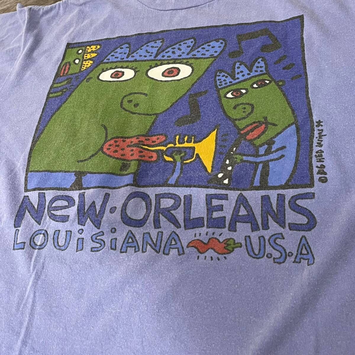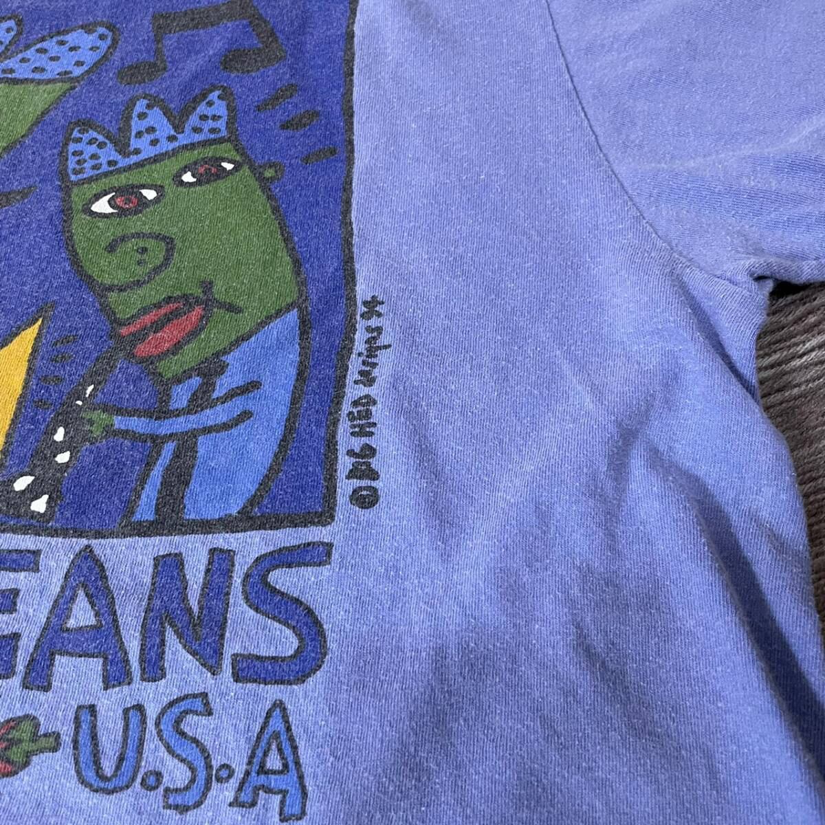 ●ブランド ONELTA ●年代 90年代 ●詳細 ルイジアナ州ニューオリンズのジャズアートTになります。 ●サイズ表記 L 着丈 72 cm 身幅 60 cm 袖丈 21 cm ●カラー ブルー 青 ●素材 ●状態 古着の為多少の使用感はありますが、目立つ汚れなどはございません。 商品番号