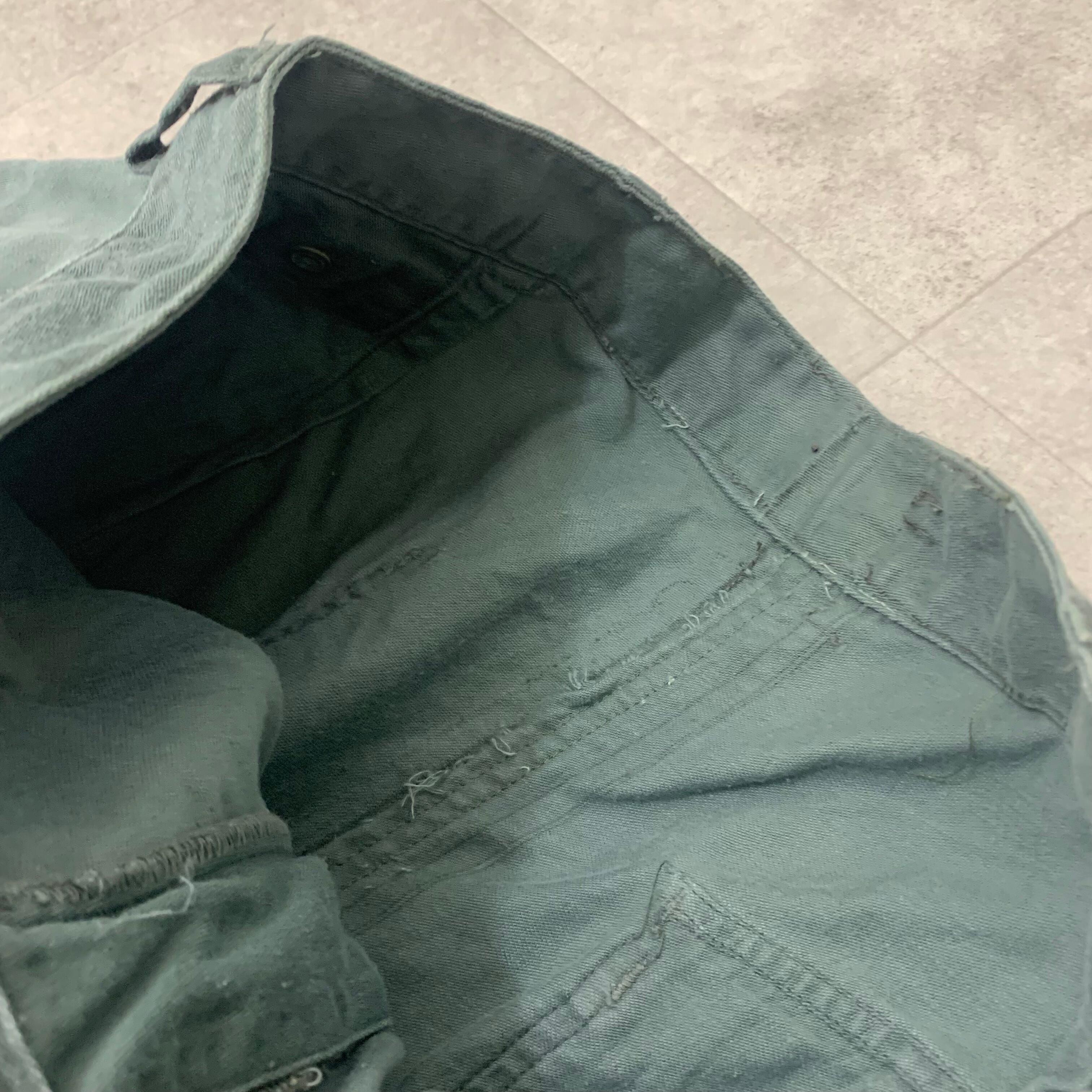 年々見る機会が減ってきました。是非ご検討ください。こちらのアイテム、黒タグと白タグ両方存在します。タグが欠損しておりますが黒タグのものかと思われます。A.PRESSE でもサンプリングされたパンツのオリジナル 50年代米軍実物です。