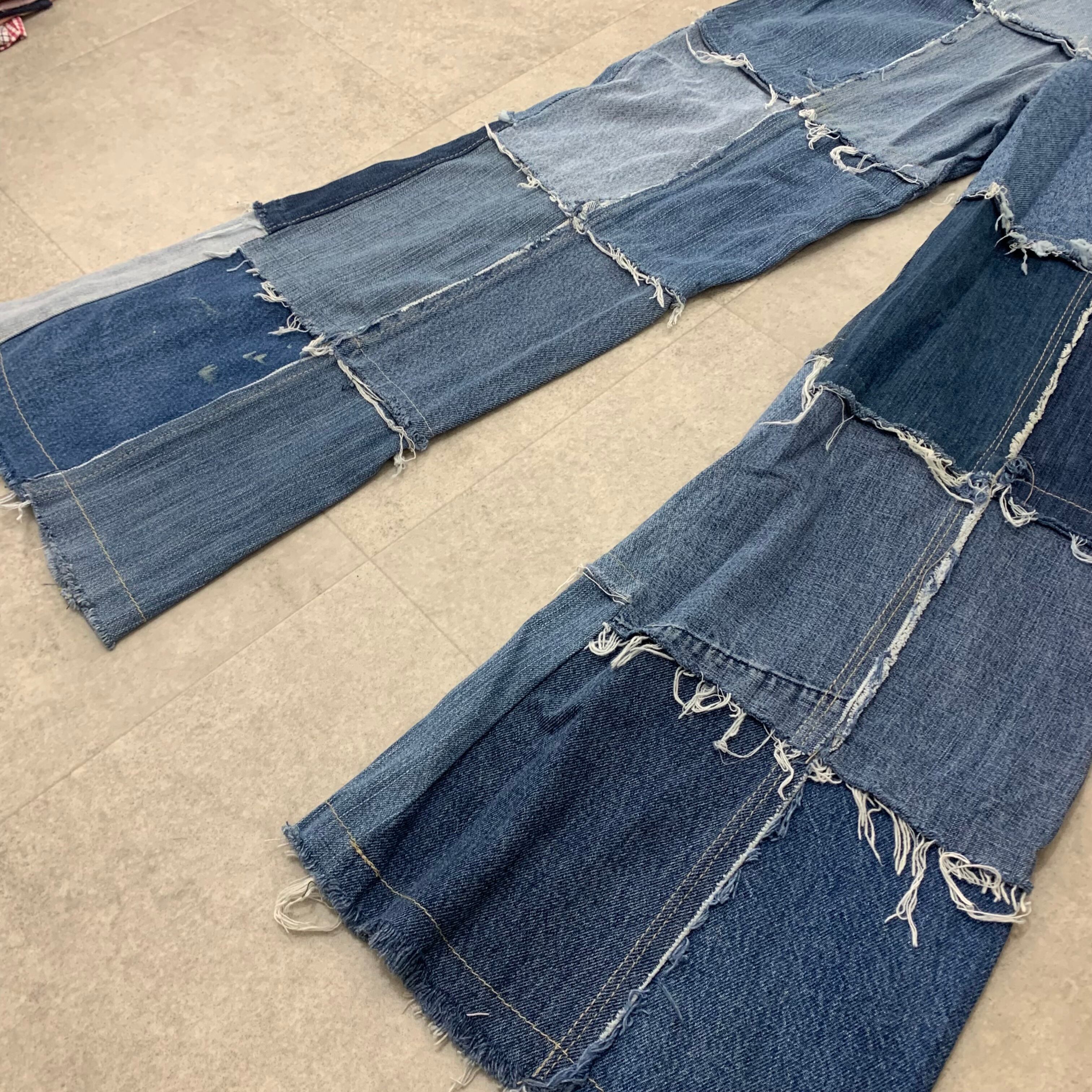 ●年代 ●サイズ 実寸32×30 ウエスト 41センチ 渡り幅 29センチ 裾幅 33センチ 総丈 109センチ 股下 74センチ ●カラー ●素材 コットン ●状態 裾に若干の汚れがございます。