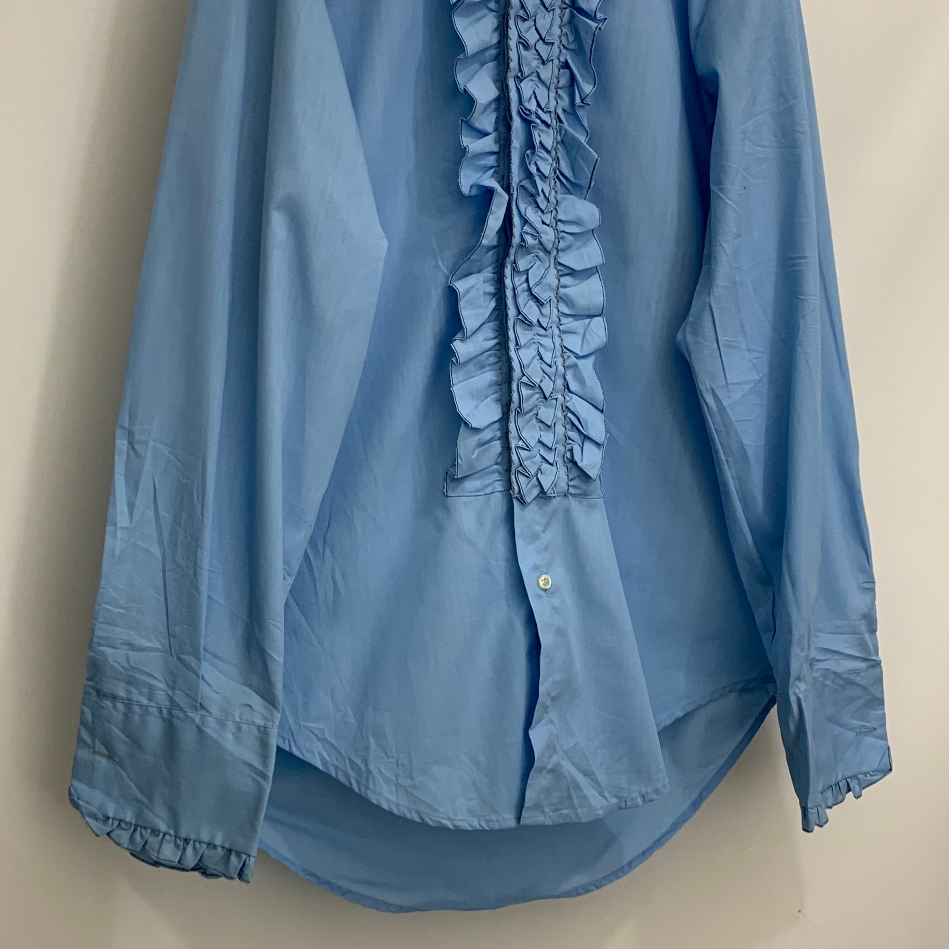 ●ブランド ●年代 70年代 ●詳細 ●サイズ表記 15 1/2 33 着丈 76cm 身幅 58cm 肩幅 46cm 袖丈 68cm ●カラー 水色 ●素材 ポリエステル 65% コットン 35% ●状態 古着の為、多少の使用感がございますが、目立った汚れやダメージはございません。