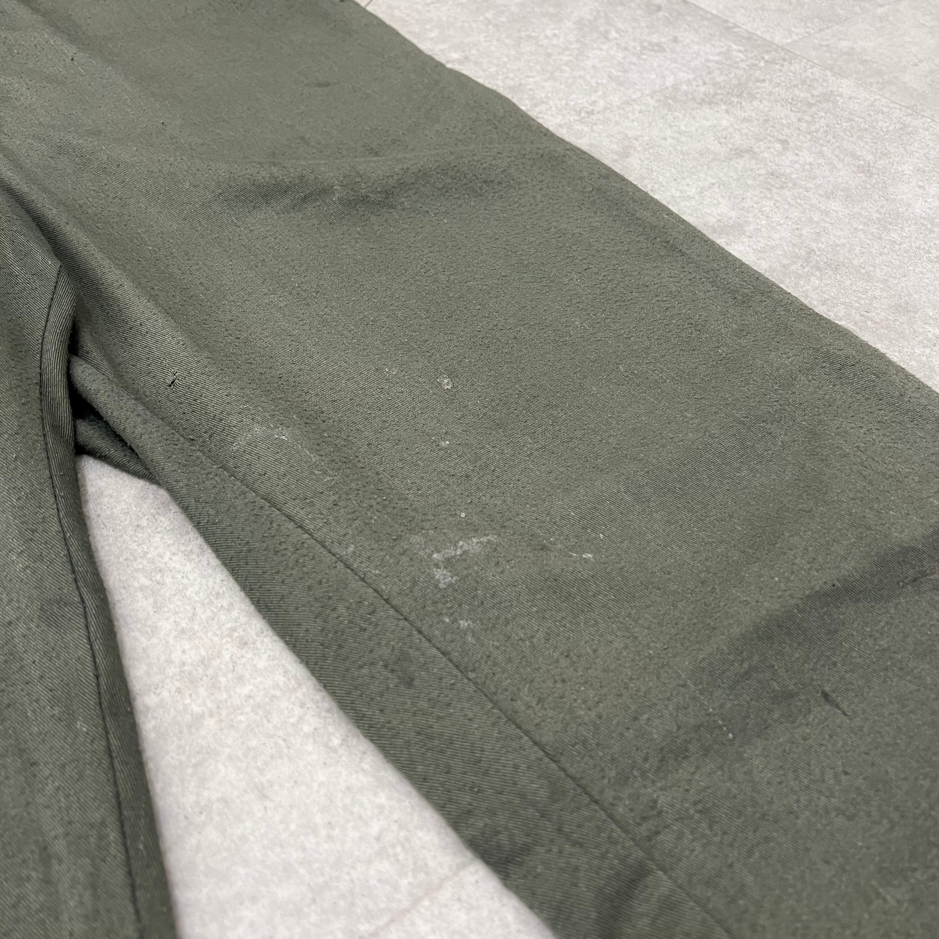 ●ブランド Lee ●年代 60-70年代頃 ●詳細 ●サイズ表記 総丈 156cm 身幅 62cm 肩幅 49cm ウエスト 52cm ワタリ幅 33cm 裾幅 24cm 股下 76cm ●カラー セージグリーン ●素材 コットン ●状態 ビンテージ品につに多少の使用感、ダメージのある箇所がございます。
