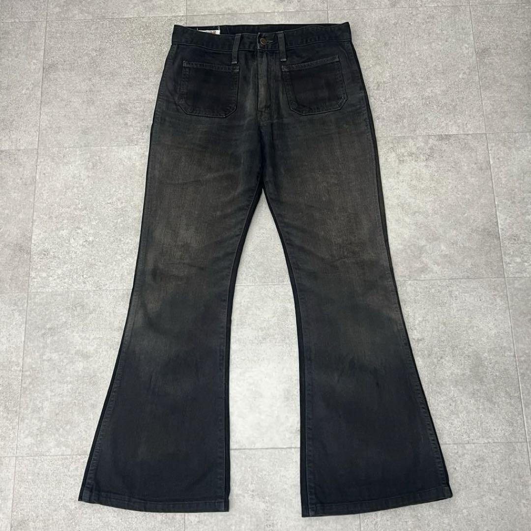 70s BIG JHON ビッグジョン ビッグベル フレア ブラック デニム 黒