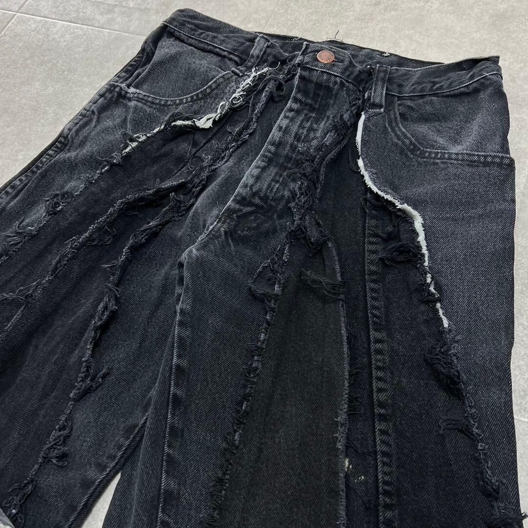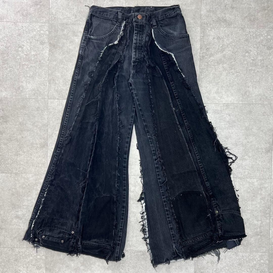 ●サイズ 実寸 W31 ウエスト 39センチ 渡り幅 32センチ 裾幅 39センチ 股上 28センチ 股下 75センチ 総丈 100センチ ●素材 コットン ●状態 目立つ汚れ等無し ※リメイク品の為ほつれ等ある場合がございます。 ⑥